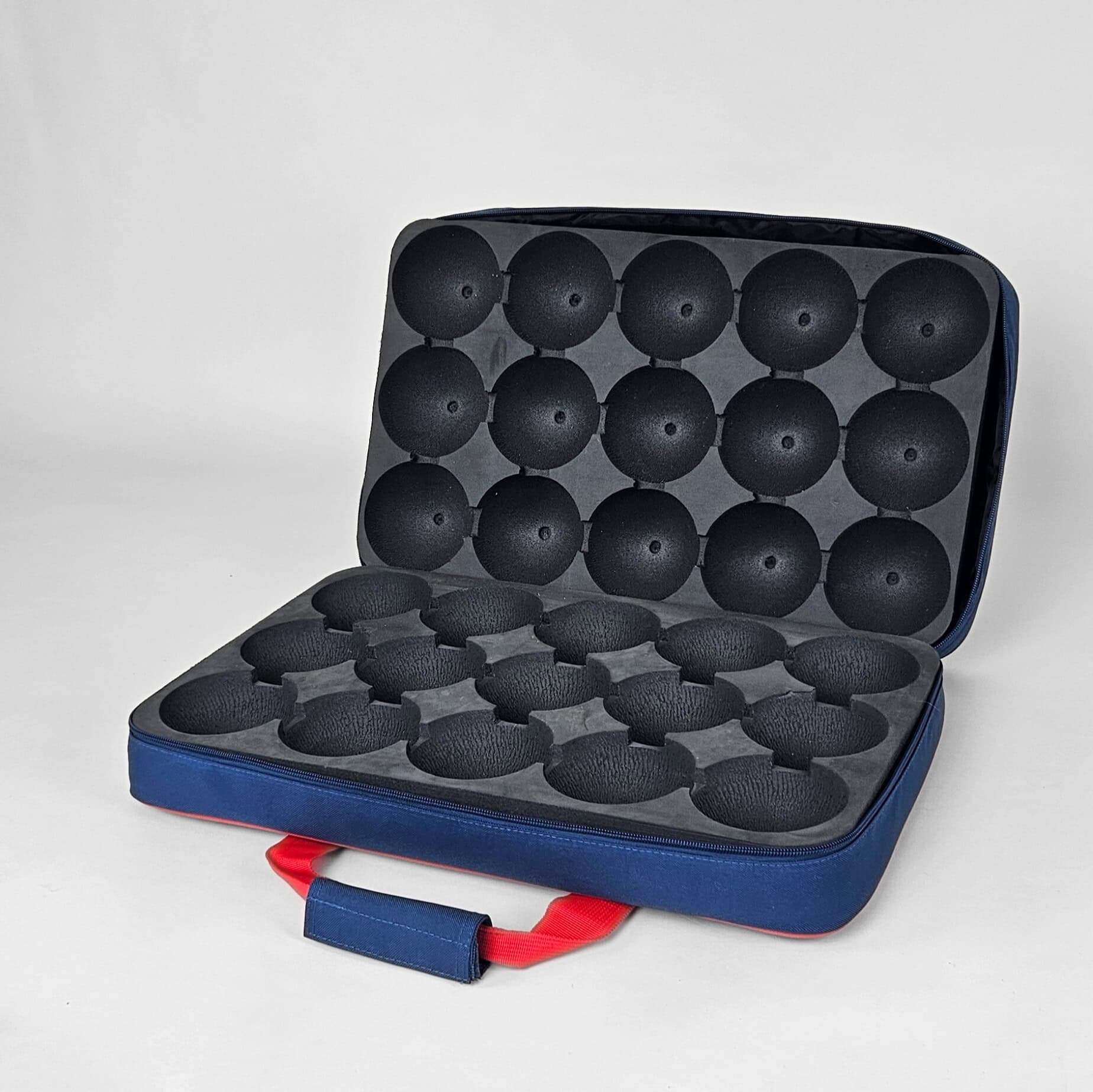 The bag itself is identical to and of the same high quality as our classic Superior Boccia Cases, but rather than plastic inlays for 13 balls and a small compartment, this case has foam inlays and room for 15 balls.